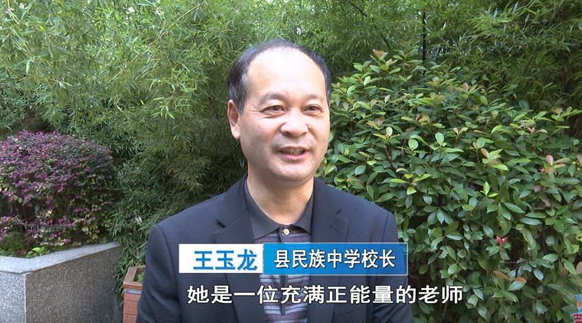 縣民族中學(xué)校長 王玉龍:她是一位充滿正能量的老師。有責(zé)任心,有事業(yè)心,有擔(dān)當(dāng),能作為,她是我校眾多優(yōu)秀教師的典型代表,是年輕教師學(xué)習(xí)的楷模,更是學(xué)生心目中敬佩的好老師。