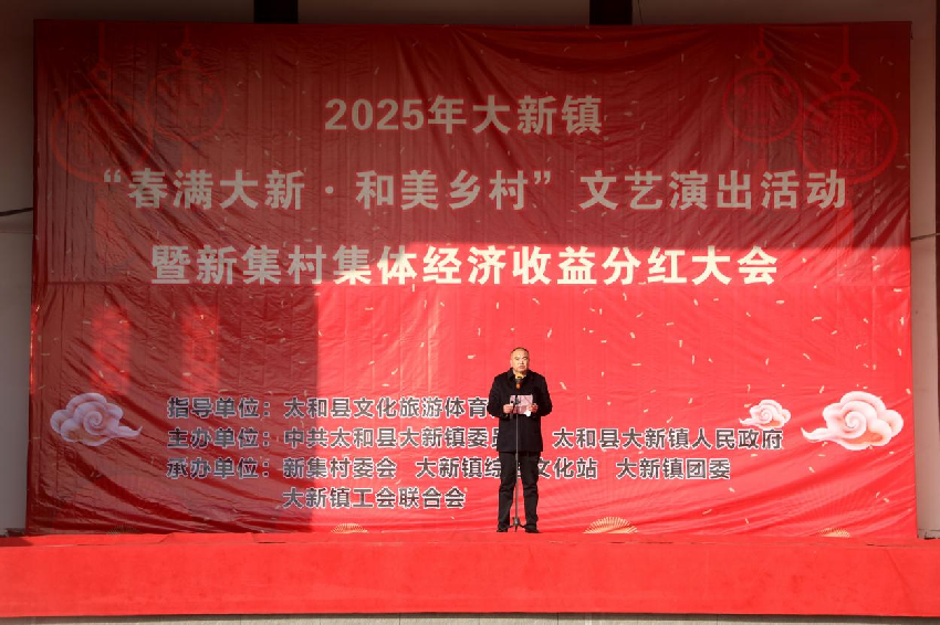 “春滿大新·和美鄉(xiāng)村”冬季村晚暨新集村集體經(jīng)濟(jì)收益分紅大會的成功舉辦,是大新鎮(zhèn)文化繁榮與經(jīng)濟(jì)發(fā)展的生動寫照,展現(xiàn)了一個(gè)團(tuán)結(jié)、和諧、美麗的新時(shí)代鄉(xiāng)村良好風(fēng)貌。通過這樣的活動,不僅增強(qiáng)村民對自己家鄉(xiāng)的認(rèn)同感和歸屬感,形成人人參與、共同發(fā)展的良好氛圍,還讓每位村民積極參與到鄉(xiāng)村建設(shè)中,為實(shí)現(xiàn)“和美鄉(xiāng)村”而努力。