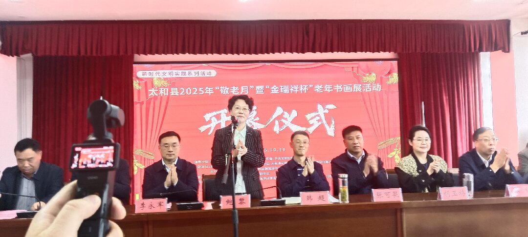 10月11日,太和縣2025年“敬老月”暨“金瑞祥杯”老年書畫展活動開幕儀式在縣老年大學舉行??h人大常委會主任鮑黎出席并宣布開幕??h委常委、宣傳部長韓超致辭,縣政府副縣長李永軍、縣政協(xié)副主席張可畏及縣老年大學校長陸鳳杰、縣直相關(guān)單位負責人,各鄉(xiāng)鎮(zhèn)分管負責同志、老同志代表等出席開幕式。
