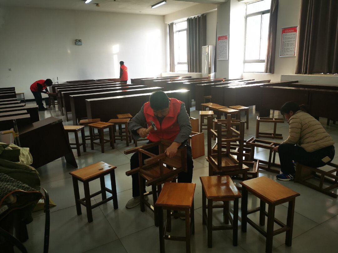 1月12日上午,太和縣老年大學(xué)綜合演藝廳內(nèi)暖意融融,和韻志愿服務(wù)隊的志愿者們身著紅馬甲,帶著自備的螺絲刀、扳手等工具及木料、螺絲等耗材,在隊長張梅穎的帶領(lǐng)下,開展義務(wù)維修桌椅志愿服務(wù)活動,用實際行動詮釋“老有所為”的擔(dān)當(dāng)。