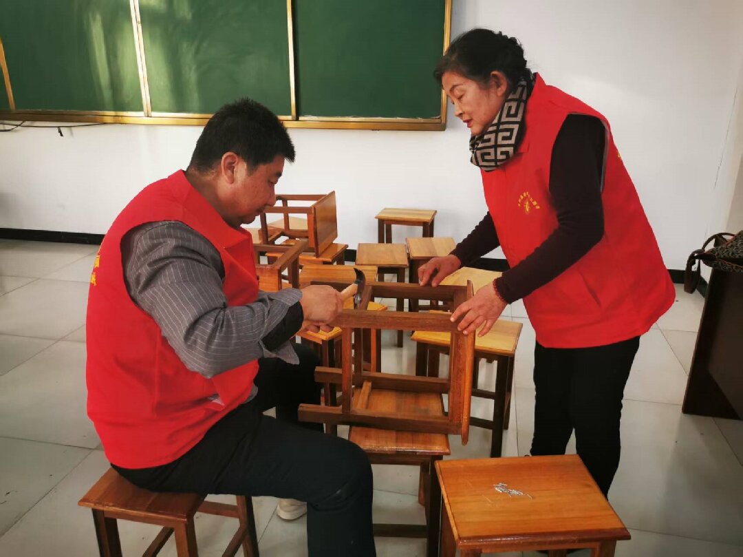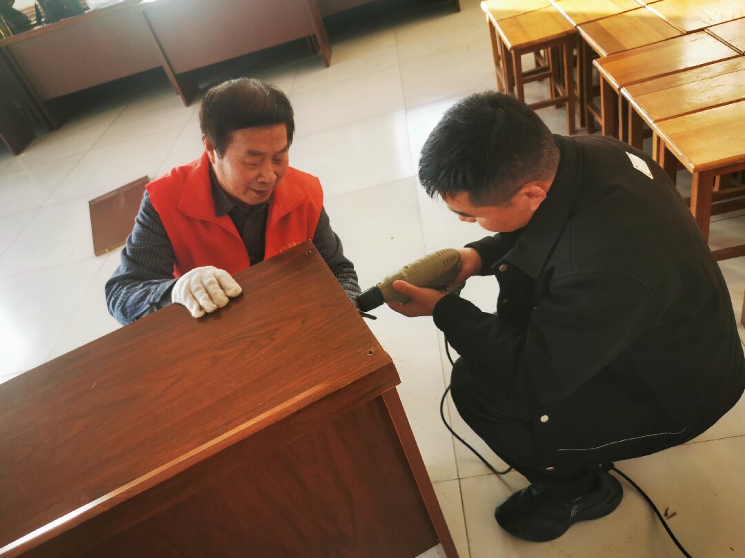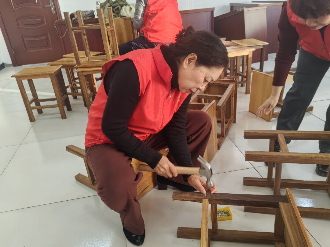 這些志愿者大多是退休老同志,雖已年過花甲,但做起活來一絲不茍。“看到桌椅壞了影響使用,我們就想著盡份力。”志愿者云宗建一邊固定桌腿一邊說道。自帶工具、自購耗材,他們不計得失,用靈巧的雙手讓一張張破損桌椅重?zé)ㄉ鷻C。經(jīng)過近兩小時的奮戰(zhàn),原本搖晃的座椅變得穩(wěn)固,破損的桌面煥然一新,累計修復(fù)各類桌椅30余套。