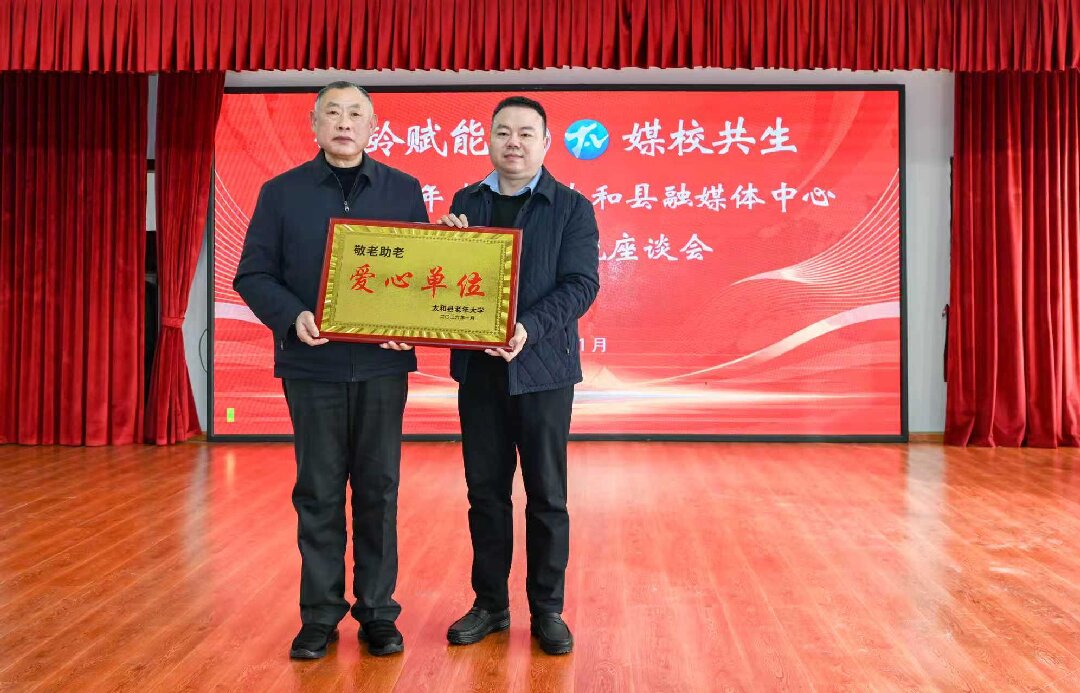 現(xiàn)場(chǎng),太和縣老年大學(xué)為縣融媒體中心授予《敬老助老愛心單位》匾牌,標(biāo)志著雙方合作正式落地。
