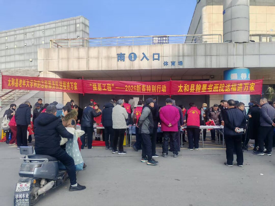 立春日暖,墨香盈城。2月4日上午9時30分,太和縣新體育場南門暖意融融、墨韻飄香,太和縣老年大學(xué)和韻志愿服務(wù)隊書法分隊攜手縣文聯(lián)、縣書協(xié)、城關(guān)鎮(zhèn)、翰墨書畫院聯(lián)合主辦的“強基工程——2026新春特別行動”正式啟幕。
