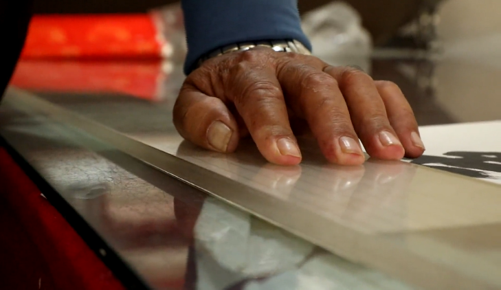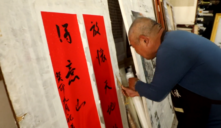 下學(xué)的時(shí)候,十來歲就和我的父親搞裝裱字畫和復(fù)修了,八零年開放過以后,我隨父親來到文化館,受文化館他們領(lǐng)導(dǎo)的委托邀請(qǐng)一直干到現(xiàn)在,在這當(dāng)中呢,我也給太和縣人民服務(wù)不少,也成就了不少的古老字畫。