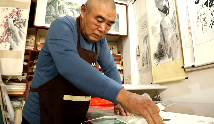 今年70歲的滑國東就是我們太和縣的一名古字畫裝裱修復(fù)師。今年,他被列為古字畫裝裱修復(fù)技藝縣級(jí)非遺傳承人。滑國東自幼隨著父親學(xué)習(xí),他尤其對(duì)宋代宣和裝裱及工筆重彩和古舊書畫修復(fù)中骨膠的運(yùn)用深有研究。其技藝得到省內(nèi)外藏家及群眾的喜愛。