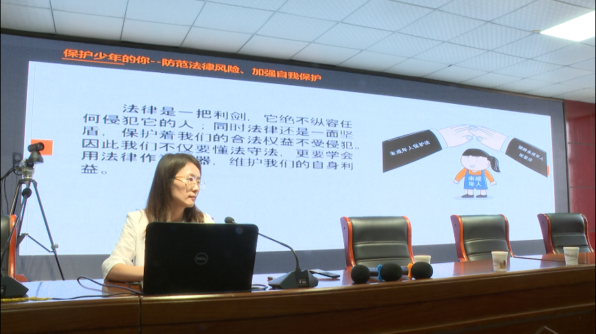 活動中,普法宣講人員還結(jié)合典型案例,向?qū)W生們普及了法律知識,引導(dǎo)學(xué)生樹立法治意識、安全意識和底線意識。