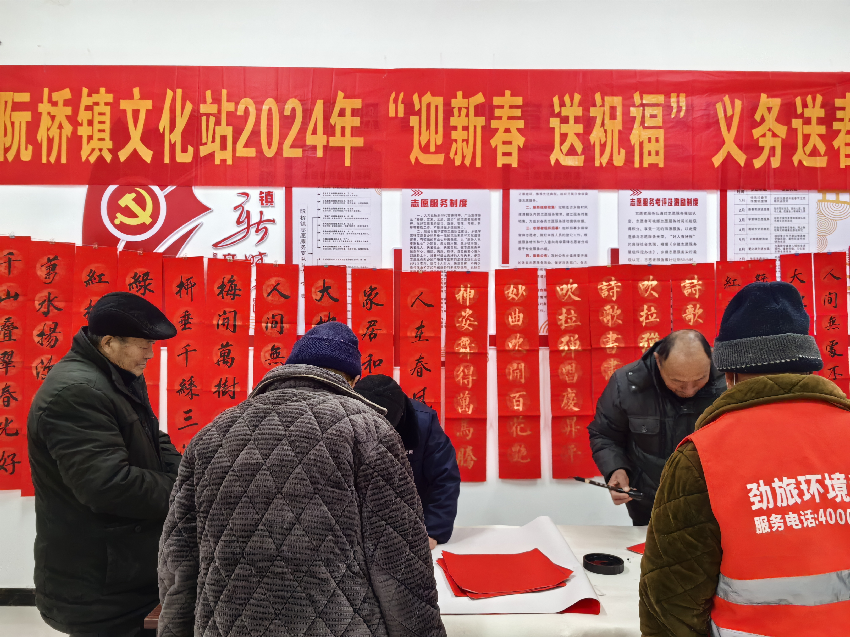 “迎新年,貼春聯(lián),歡天喜地過大年”,春聯(lián)是中國特有的文學(xué)形式,是過年的重要習(xí)俗。為迎接龍年春節(jié)的到來,1月31日上午,阜陽市太和縣阮橋鎮(zhèn)文化站聯(lián)合鎮(zhèn)婦聯(lián)、工會、關(guān)工委等多部門聯(lián)合開展“迎新春,送祝福”寫春聯(lián)送年?;顒?,為轄區(qū)居民送上一份年味兒十足的新春賀禮。